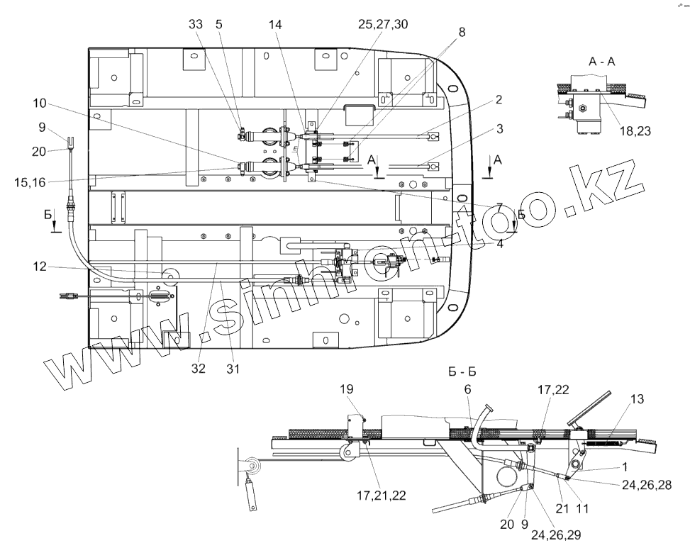 Каталог запасных частей к технике: Гомсельмаш КСК-600. Площадка управления КГС 0119000 (вид снизу)