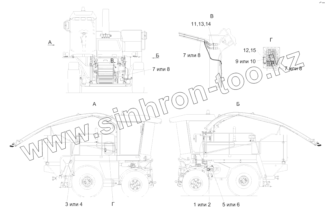 Гидросистема рабочих органов и рулевого управления КГС 0125000 (вид справа)