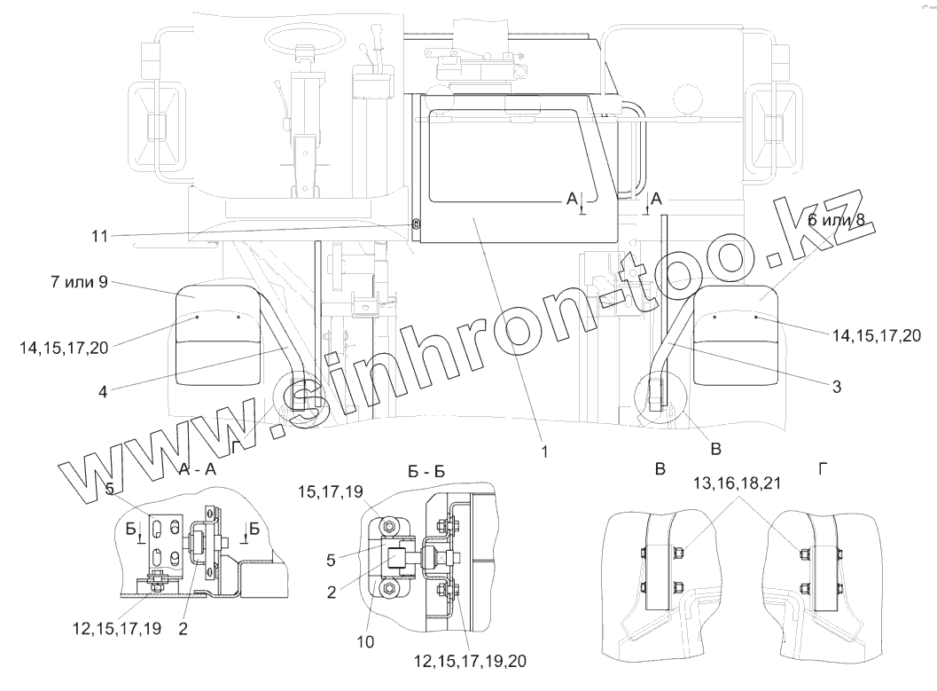 Каталог запасных частей к технике: Гомсельмаш КСК-600. Установка капотов КГС 0128000 (вид спереди)