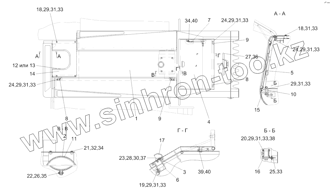 Каталог запасных частей к технике: Гомсельмаш КСК-600. Установка капотов КГС 0128000 (вид сверху)