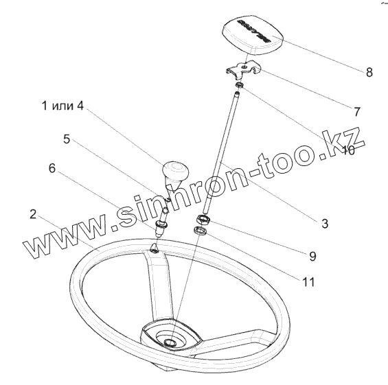 Каталог запасных частей к технике: Гомсельмаш КСК-600. Установка колеса рулевого КЗК-12-0122600-01
