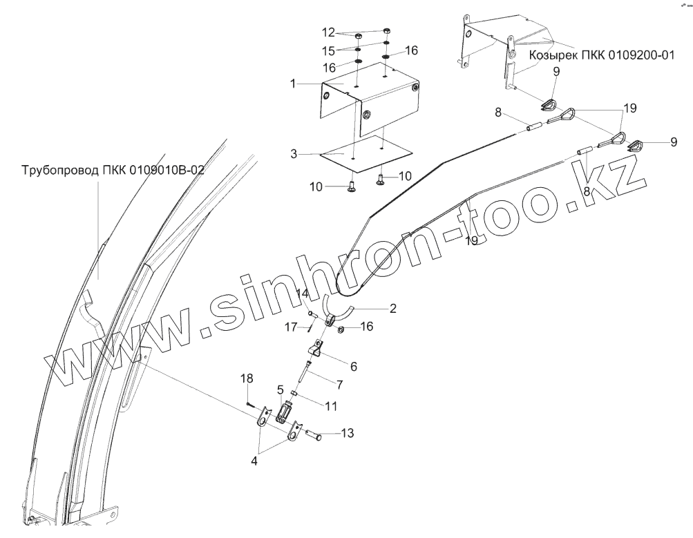 Каталог запасных частей к технике: Гомсельмаш КСК-600. Устройство натяжное, канат, козырьки силосопровода