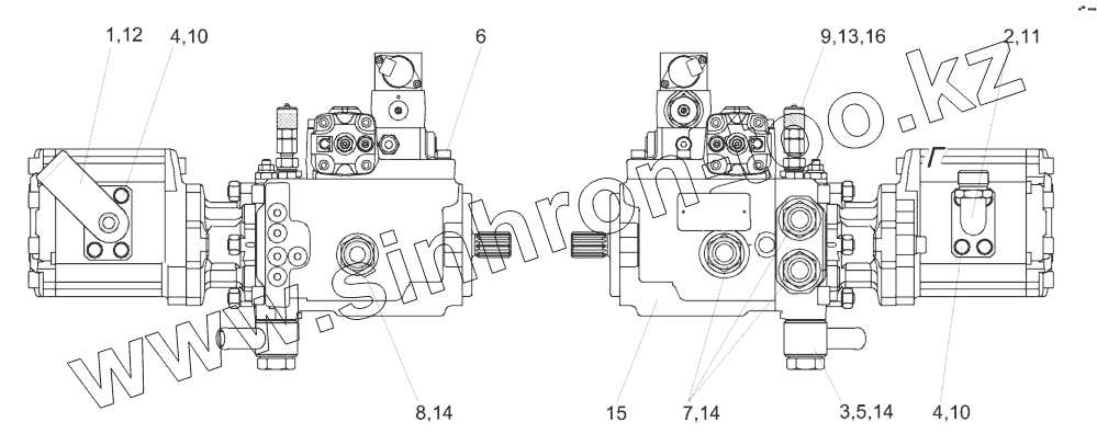Каталог запасных частей к технике: Гомсельмаш КСК-600. Гидронасос двухсекционный КГС 0115310А