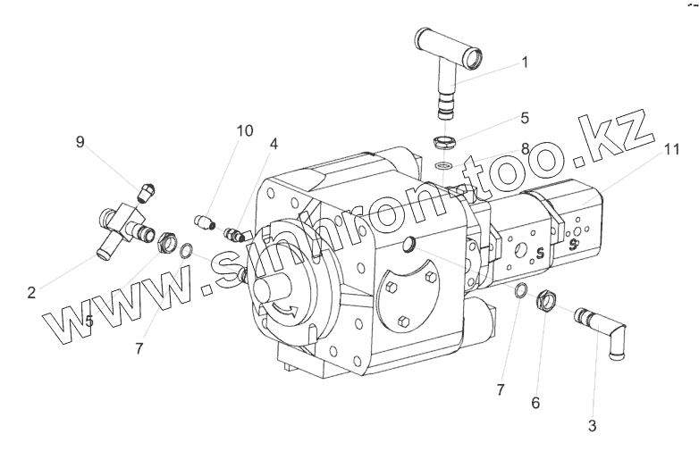 Каталог запасных частей к технике: Гомсельмаш КСК-600. Гидронасос трехсекционный КГС 0108010А