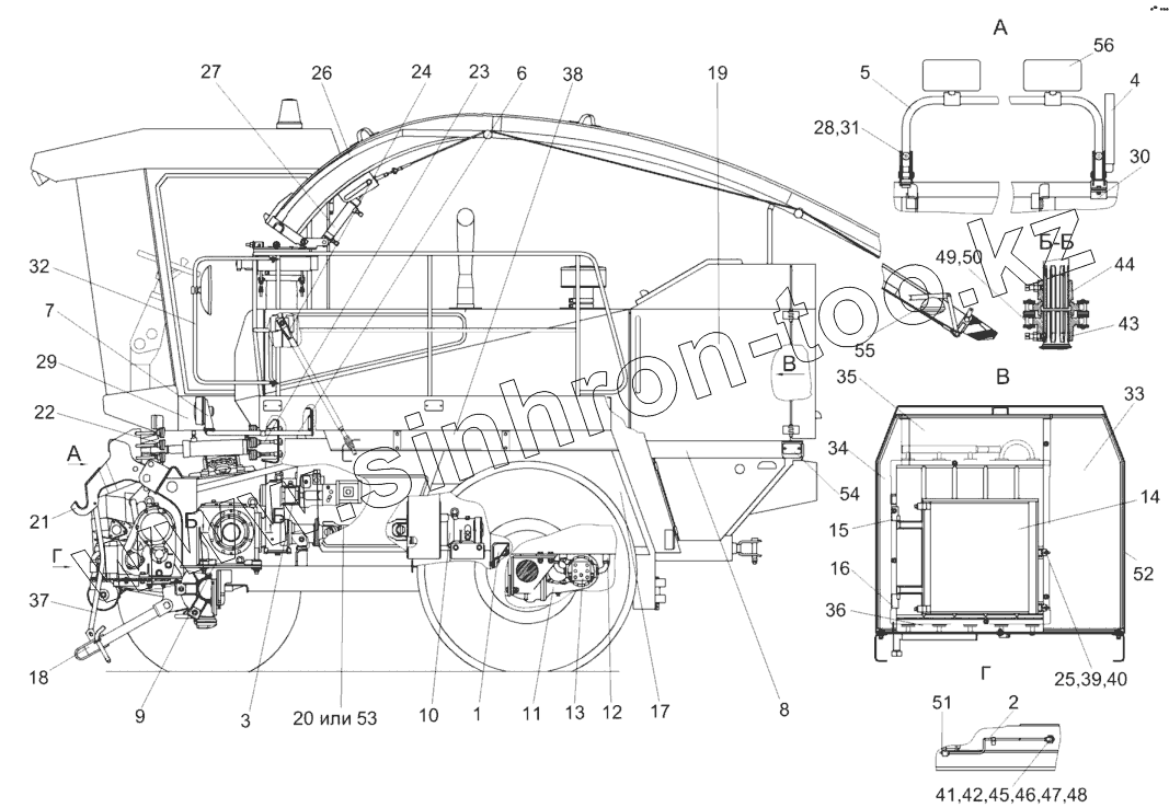 Каталог запасных частей к технике: Гомсельмаш КСК-600. Измельчитель самоходный КГС 0100000 (вид слева)