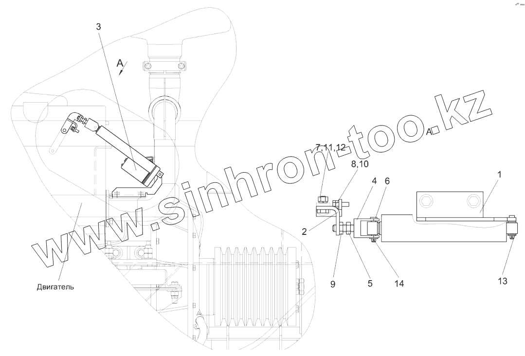 Каталог запасных частей к технике: Гомсельмаш КСК-600. Механизм управления топливным насосом КГС 0119120