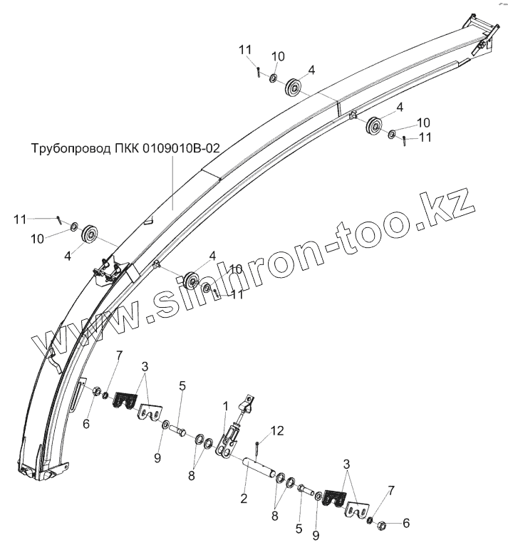 Каталог запасных частей к технике: Гомсельмаш КСК-600. Силосопровод ПКК 0109000В-03 (установка устройства натяжного)