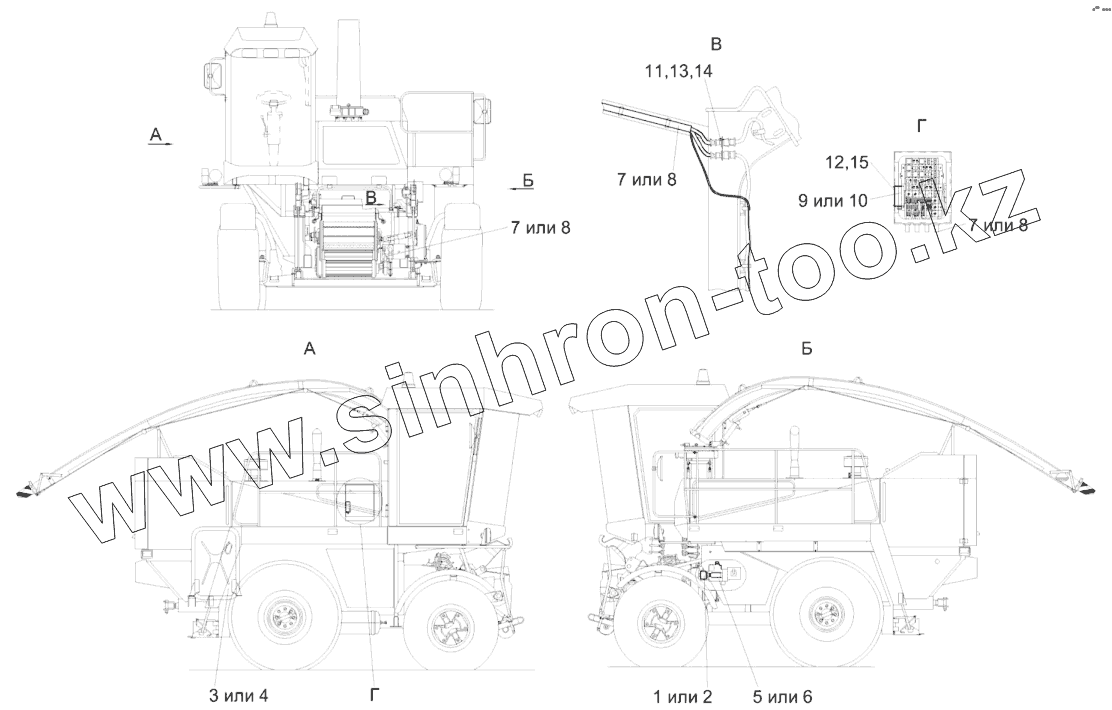 Гидросистема привода питающего аппарата и адаптеров КГС 0115000 (вид слева)