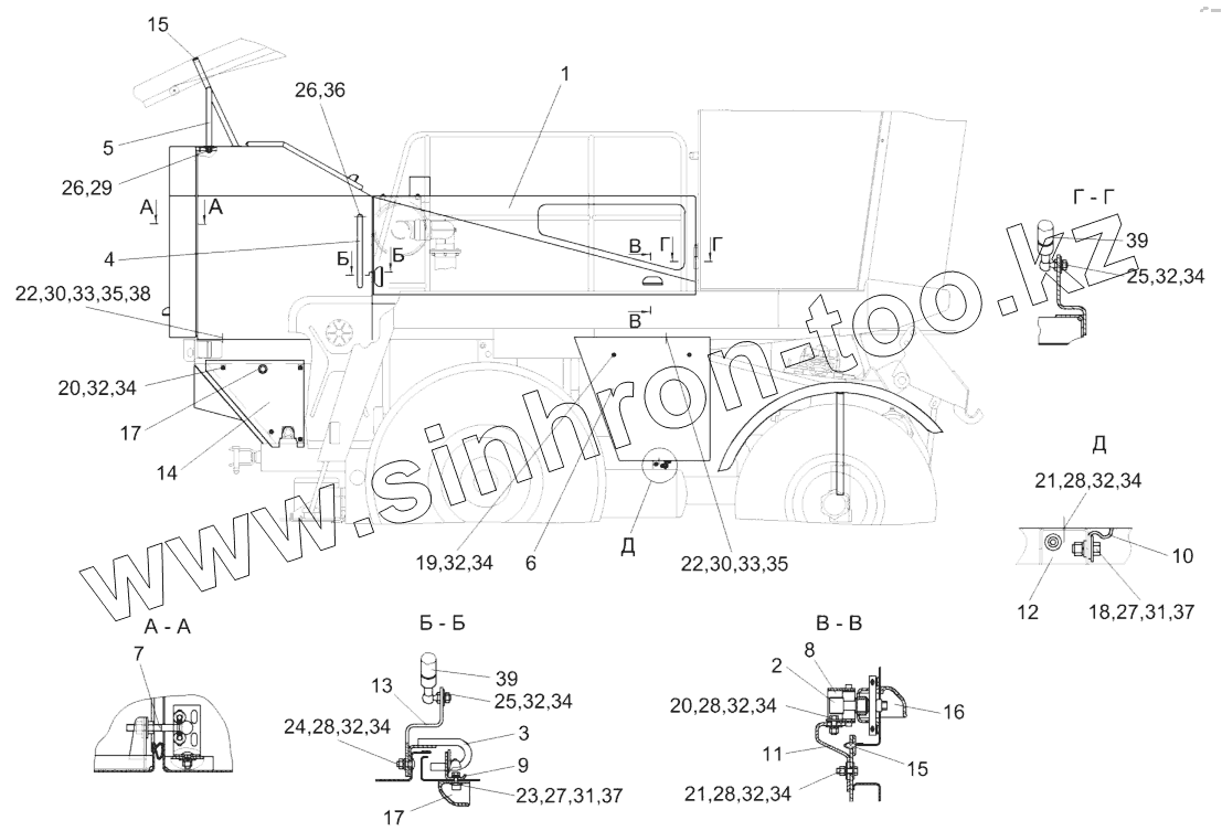 Каталог запасных частей к технике: Гомсельмаш КСК-600. Установка капотов КГС 0128000 (вид справа)