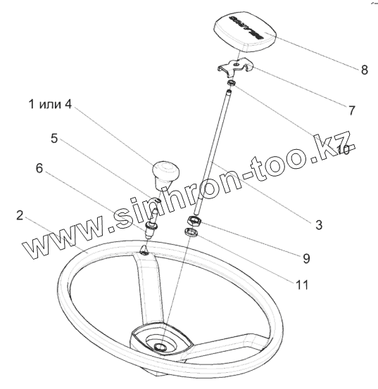 Каталог запасных частей к технике: Гомсельмаш КСК-600. Установка колеса рулевого КЗК-12-0122600-01