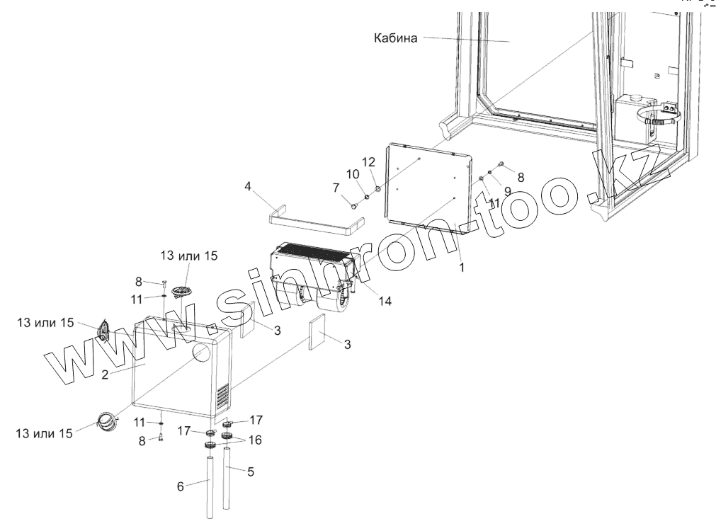 Каталог запасных частей к технике: Гомсельмаш КСК-600. Установка отопителя КГС 0120980