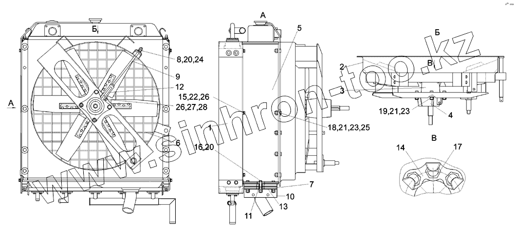 Каталог запасных частей к технике: Гомсельмаш КСК-600. Блок радиаторов КГС 0116450