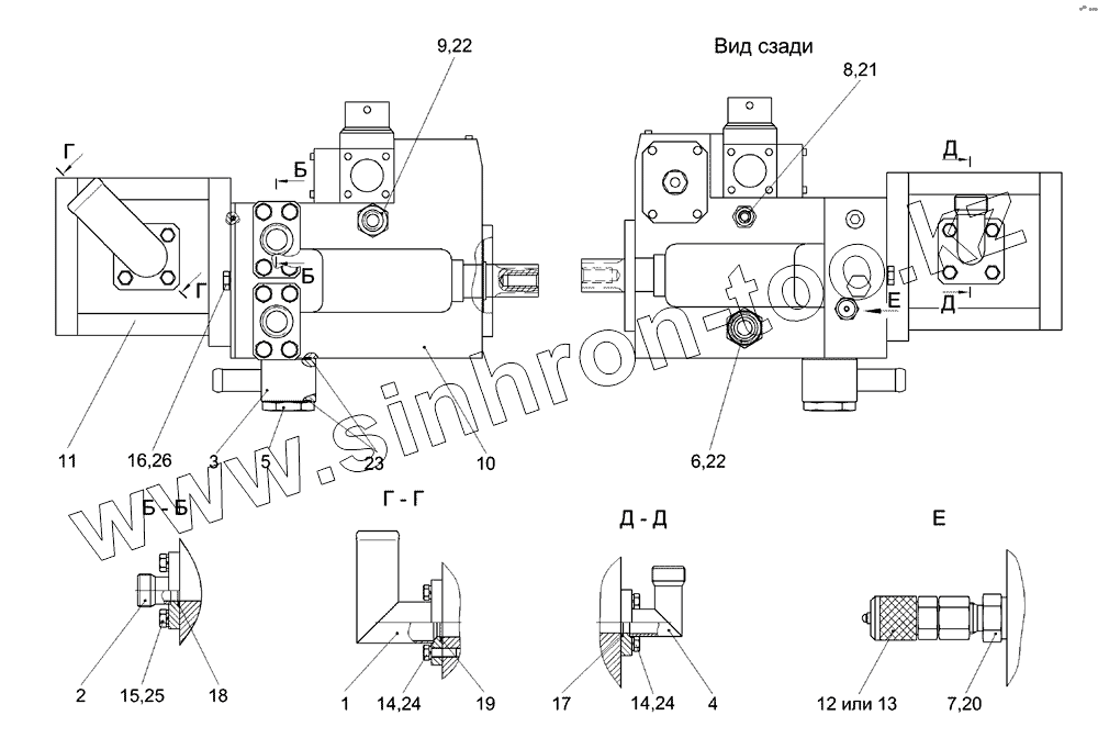 Каталог запасных частей к технике: Гомсельмаш КСК-600. Гидронасос двухсекционный КГС 0115300
