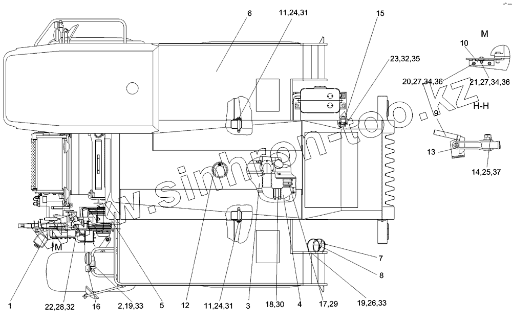 Каталог запасных частей к технике: Гомсельмаш КСК-600. Измельчитель самоходный КГС 0100000 (вид сверху)