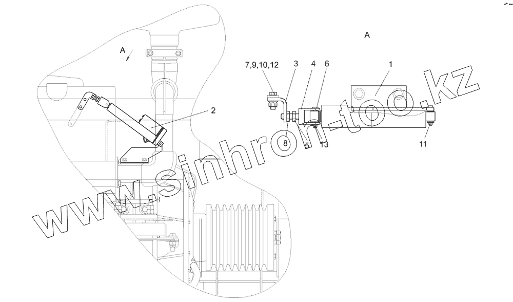 Каталог запасных частей к технике: Гомсельмаш КСК-600. Механизм управления топливным насосом КГС 0119120