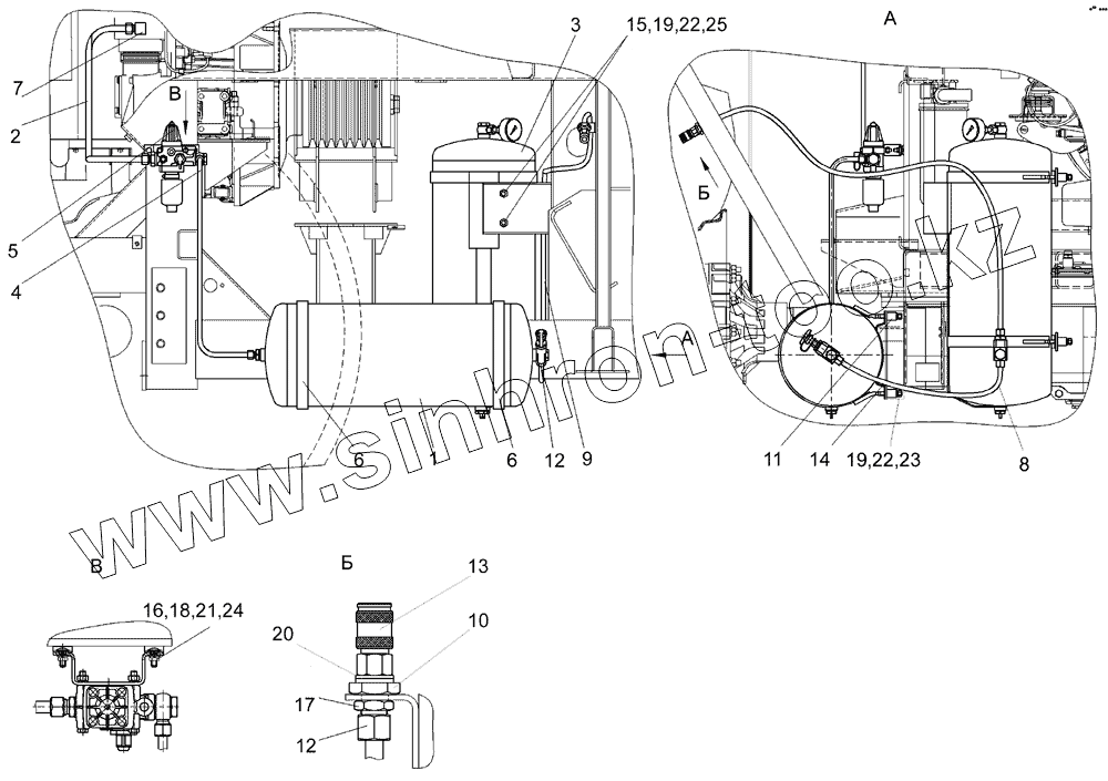 Каталог запасных частей к технике: Гомсельмаш КСК-600. Пневмосистема КГС 0180000