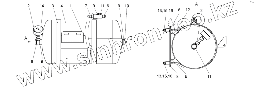 Каталог запасных частей к технике: Гомсельмаш КСК-600. Ресивер КГС 0180050