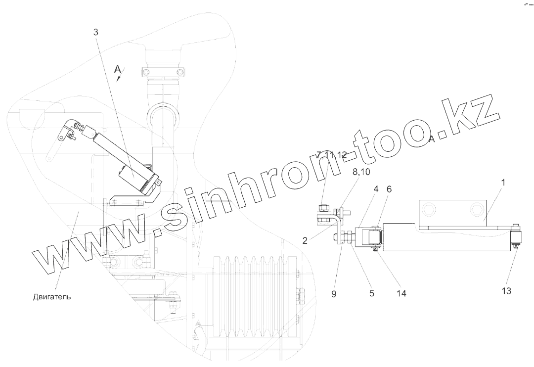 Каталог запасных частей к технике: Гомсельмаш КСК-600А. Механизм управления топливным насосом КГС 0119120
