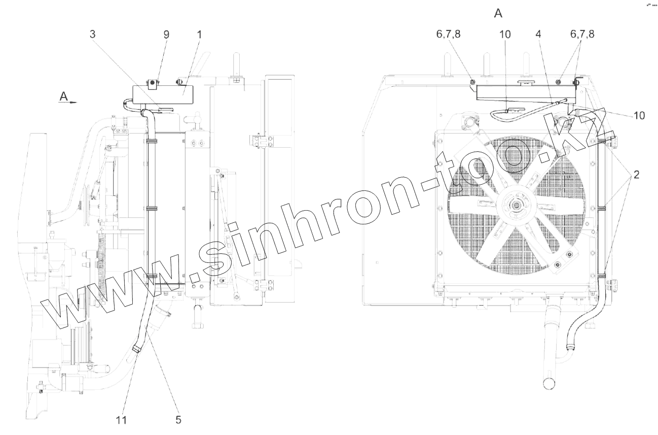 Каталог запасных частей к технике: Гомсельмаш КСК-600А. Установка бачка расширительного КГС 0116630