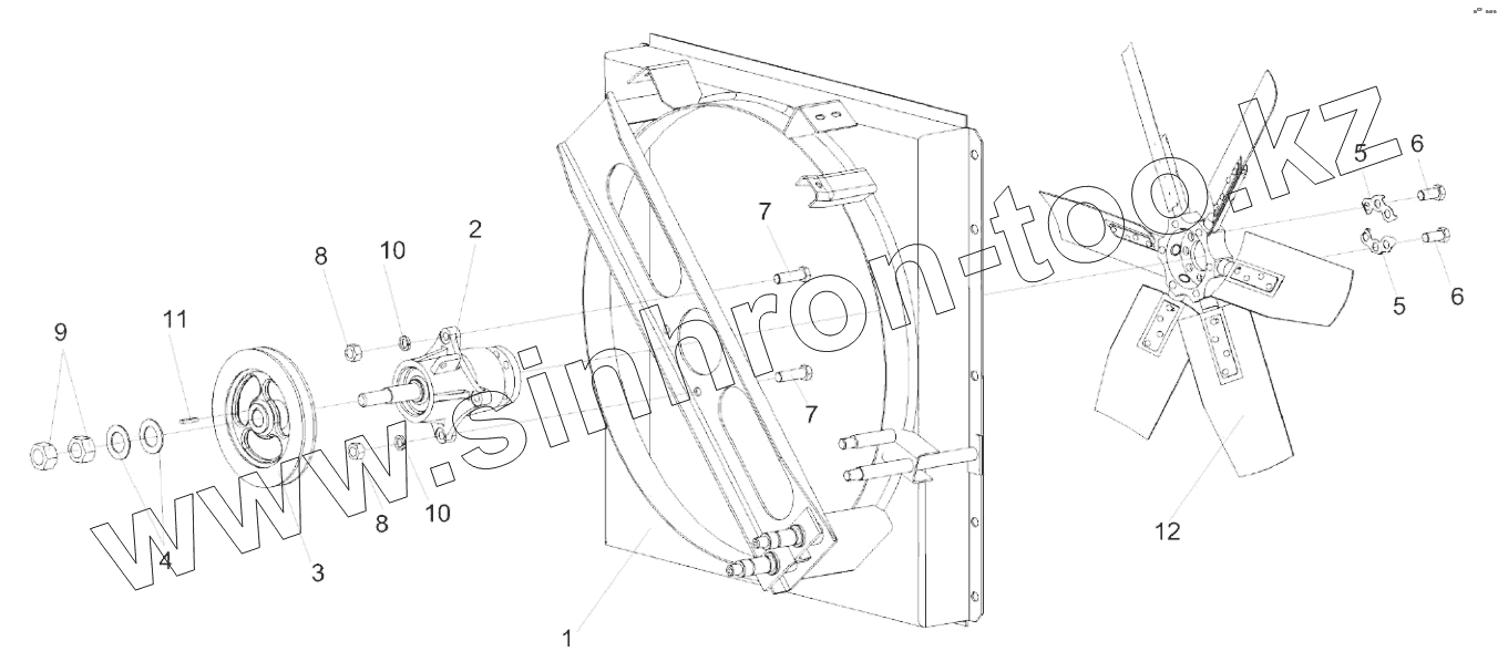 Каталог запасных частей к технике: Гомсельмаш КСК-600А. Установка привода вентилятора КГС 0116250Б