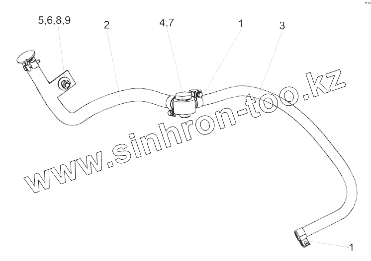 Каталог запасных частей к технике: Гомсельмаш КСК-600А. Установка сливных рукавов КГС-3-0116180