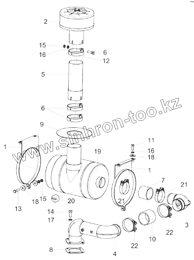 Каталог запасных частей к технике: Гомсельмаш КСК-600А. Установка воздухоочистителя КГС-3-0116080