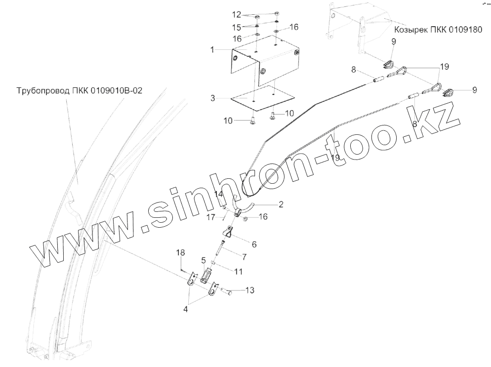 Каталог запасных частей к технике: Гомсельмаш КСК-600А. Устройство натяжное, канат, козырьки силосопровода
