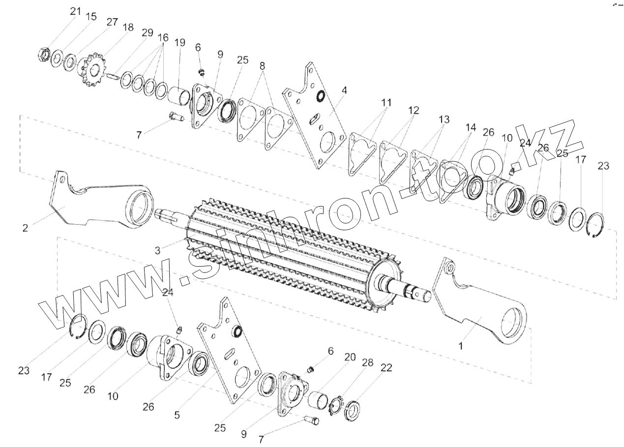 Каталог запасных частей к технике: Гомсельмаш КСК-600А. Валец задний КГС 0103560