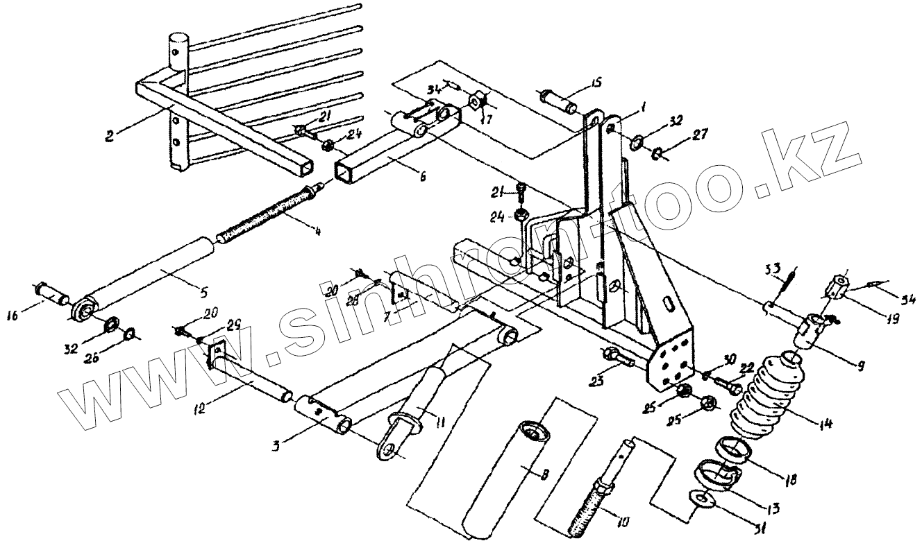 Каталог запасных частей к технике: Гомсельмаш КСН-6. Рамка, тяги валкоукладчика (правые)