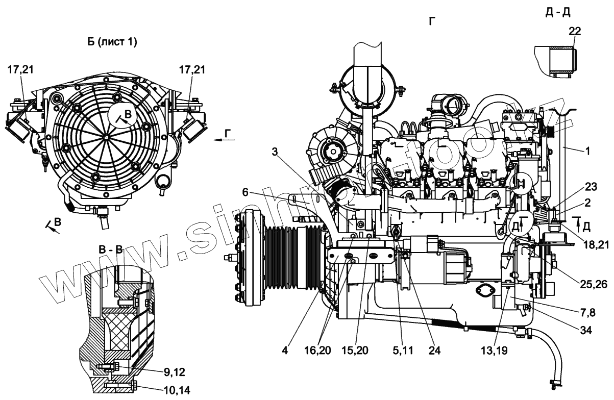Каталог запасных частей к технике: Гомсельмаш КВК-6025. Двигатель КСК-6025-0116010