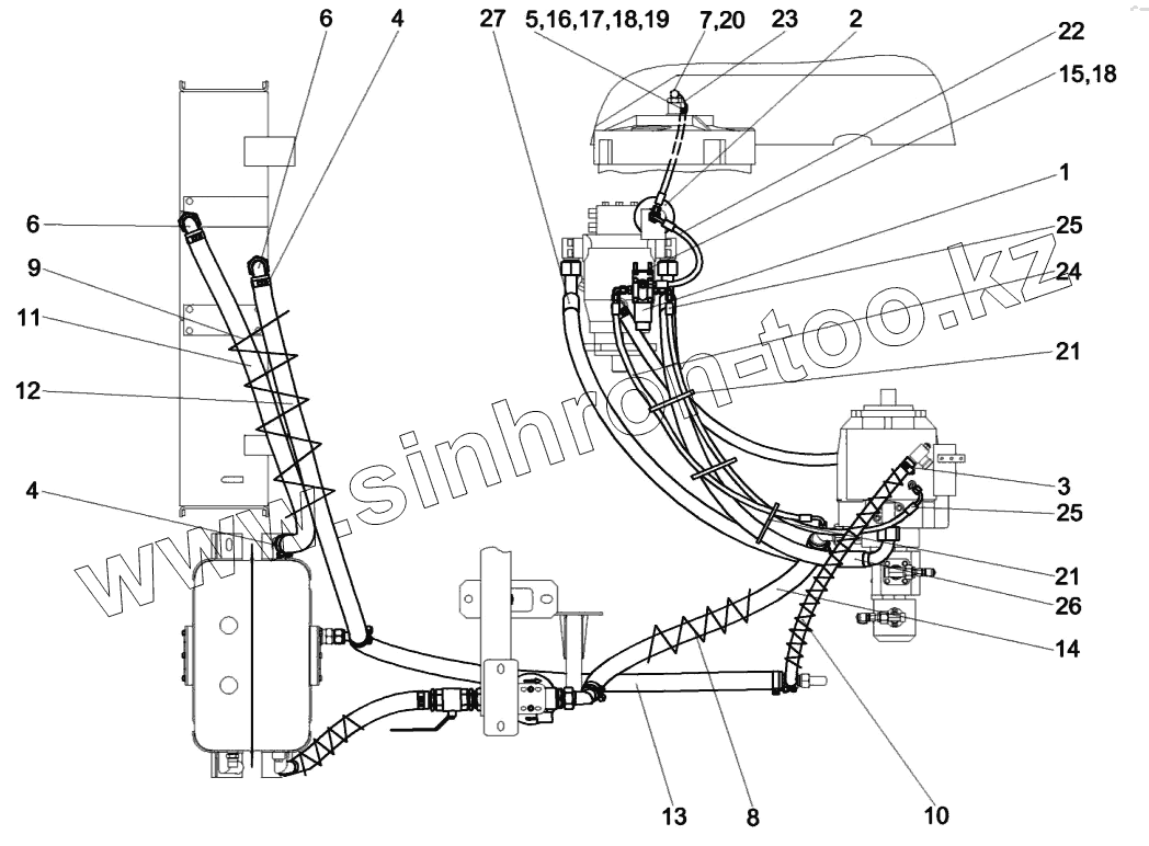 Каталог запасных частей к технике: Гомсельмаш КВК-6025. Гидросистема привода ходовой части КСК-6025-0601000