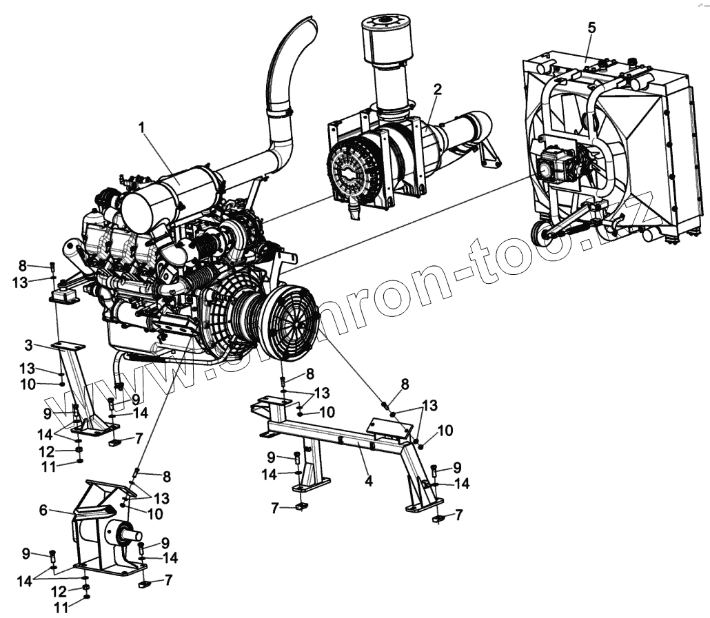 Каталог запасных частей к технике: Гомсельмаш КВК-6025. Установка двигателя КСК-6025-0116000