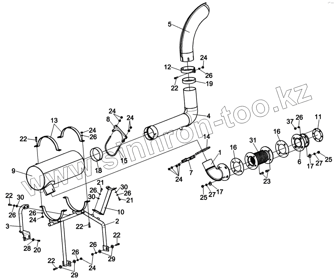 Каталог запасных частей к технике: Гомсельмаш КВК-6025. Установка глушителя КСК-6025-0116060