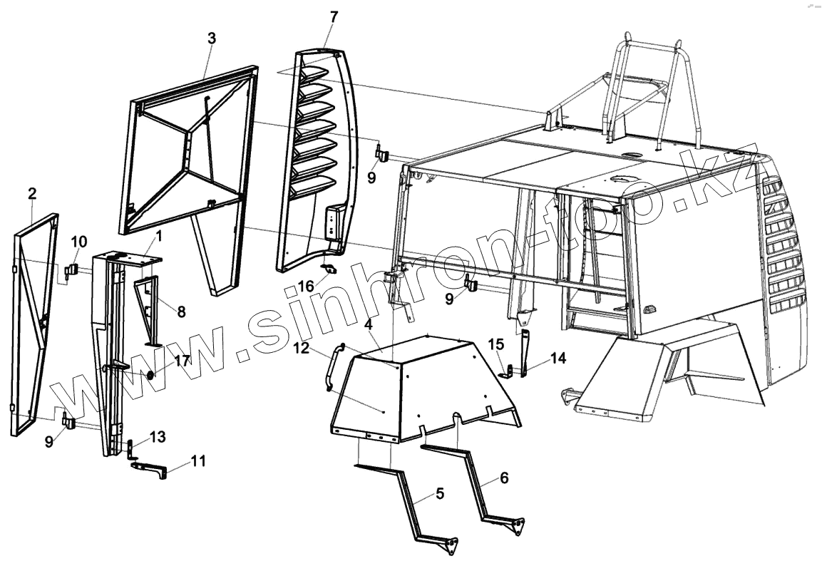 Каталог запасных частей к технике: Гомсельмаш КВК-6025. Установка капотов КСК-6025-0128000