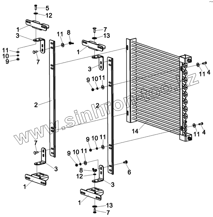 Каталог запасных частей к технике: Гомсельмаш КВК-6025. Установка конденсатора КСК-6025-0121050