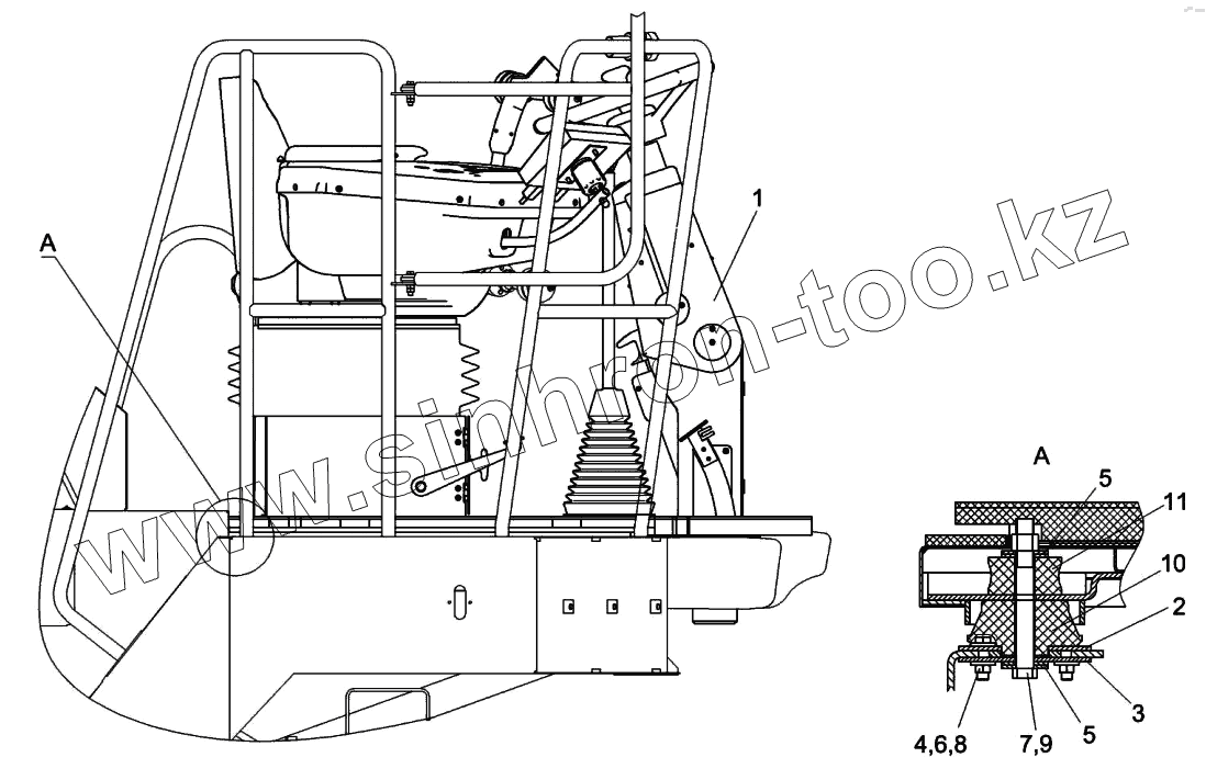 Каталог запасных частей к технике: Гомсельмаш КВК-6025. Установка площадки управления КСК-6025-0119200