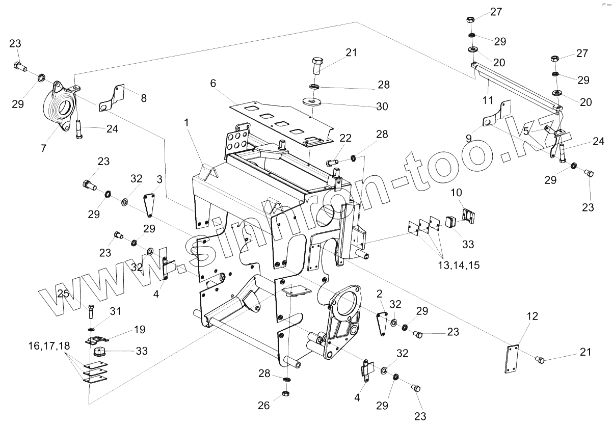 Каталог запасных частей к технике: Гомсельмаш КВК-6025. Установка рамы КСК-6025-0151010