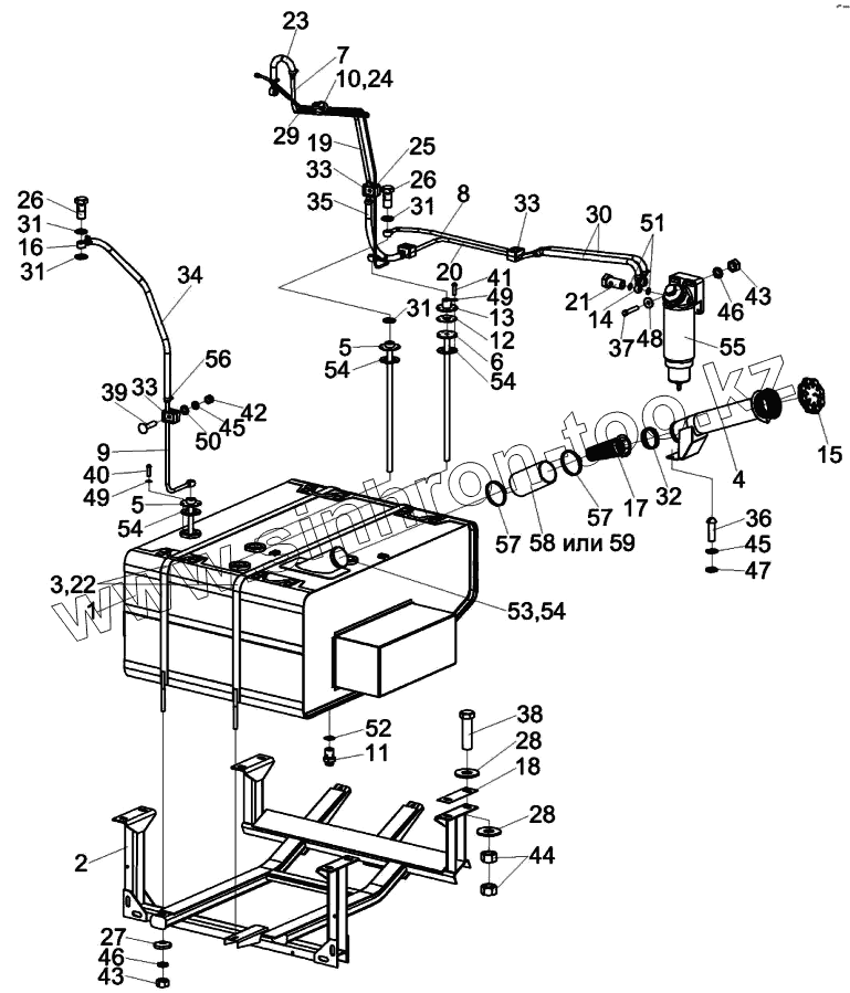 Каталог запасных частей к технике: Гомсельмаш КВК-6025. Установка топливного оборудования КСК-6025-0123000