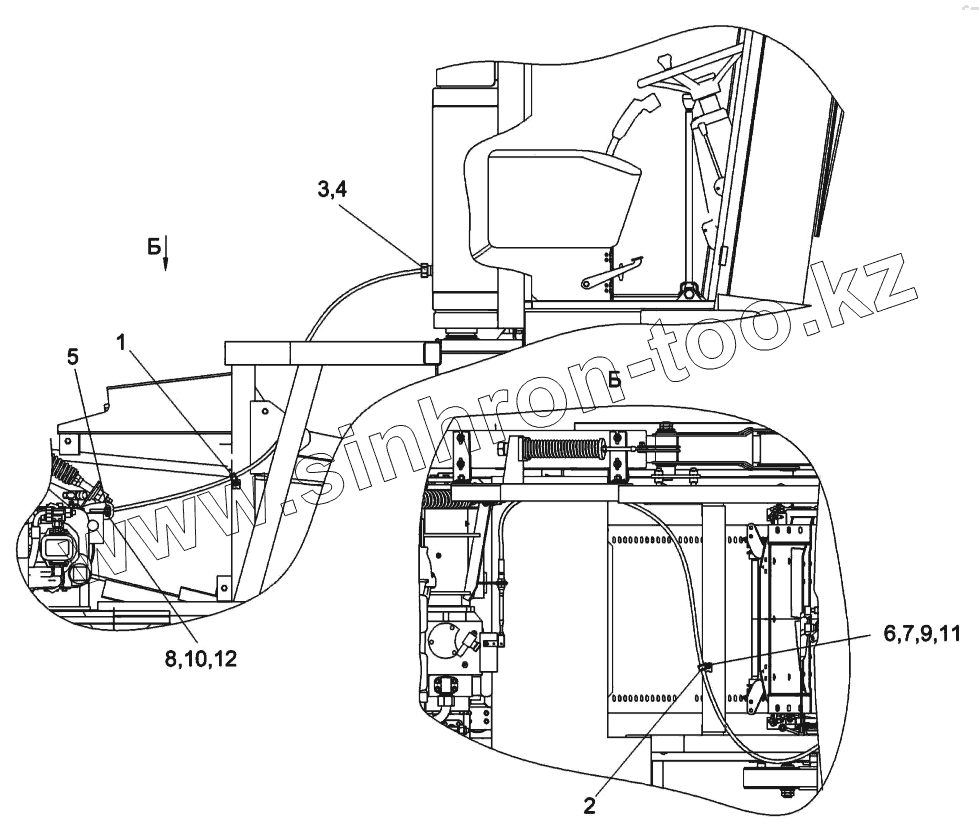 Каталог запасных частей к технике: Гомсельмаш КВК-6025. Установка троссов гидростата КСК-6025-0119150