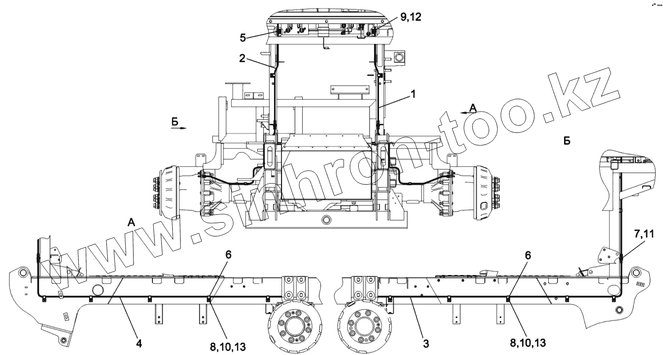 Каталог запасных частей к технике: Гомсельмаш КВК-6025. Установка трубопроводов КСК-6025-0119630