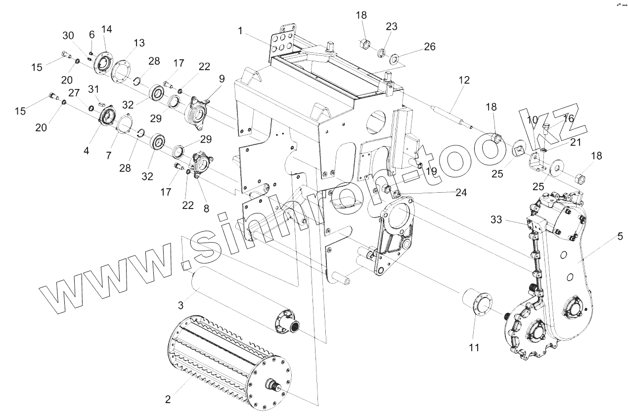 Каталог запасных частей к технике: Гомсельмаш КВК-6025. Установка вальцев нижних