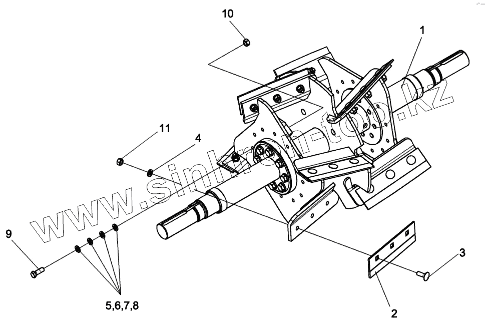 Каталог запасных частей к технике: Гомсельмаш КВК-6025. Вал ускорителя выброса КСК-6025-0156210