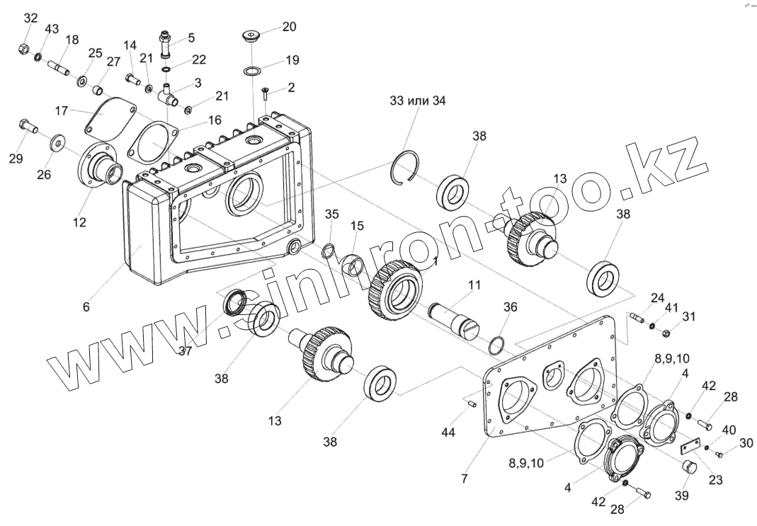 Каталог запасных частей к технике: Гомсельмаш КВК-800 (FS80-2). Редуктор КВС-2-0104100
