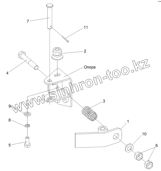Каталог запасных частей к технике: Гомсельмаш КВК-800 (FS80-2). Установка опоры КВС-2-0116550