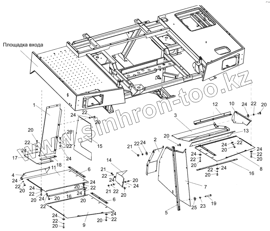 Каталог запасных частей к технике: Гомсельмаш КВК-800 (FS80-2). Установка площадки входа КВС-2-0124000