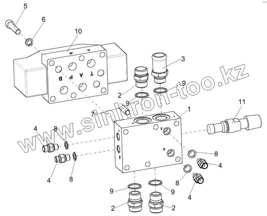 Каталог запасных частей к технике: Гомсельмаш КВК-800 (FS80-5). Гидроблок адаптеров КВС-2-0604110Б