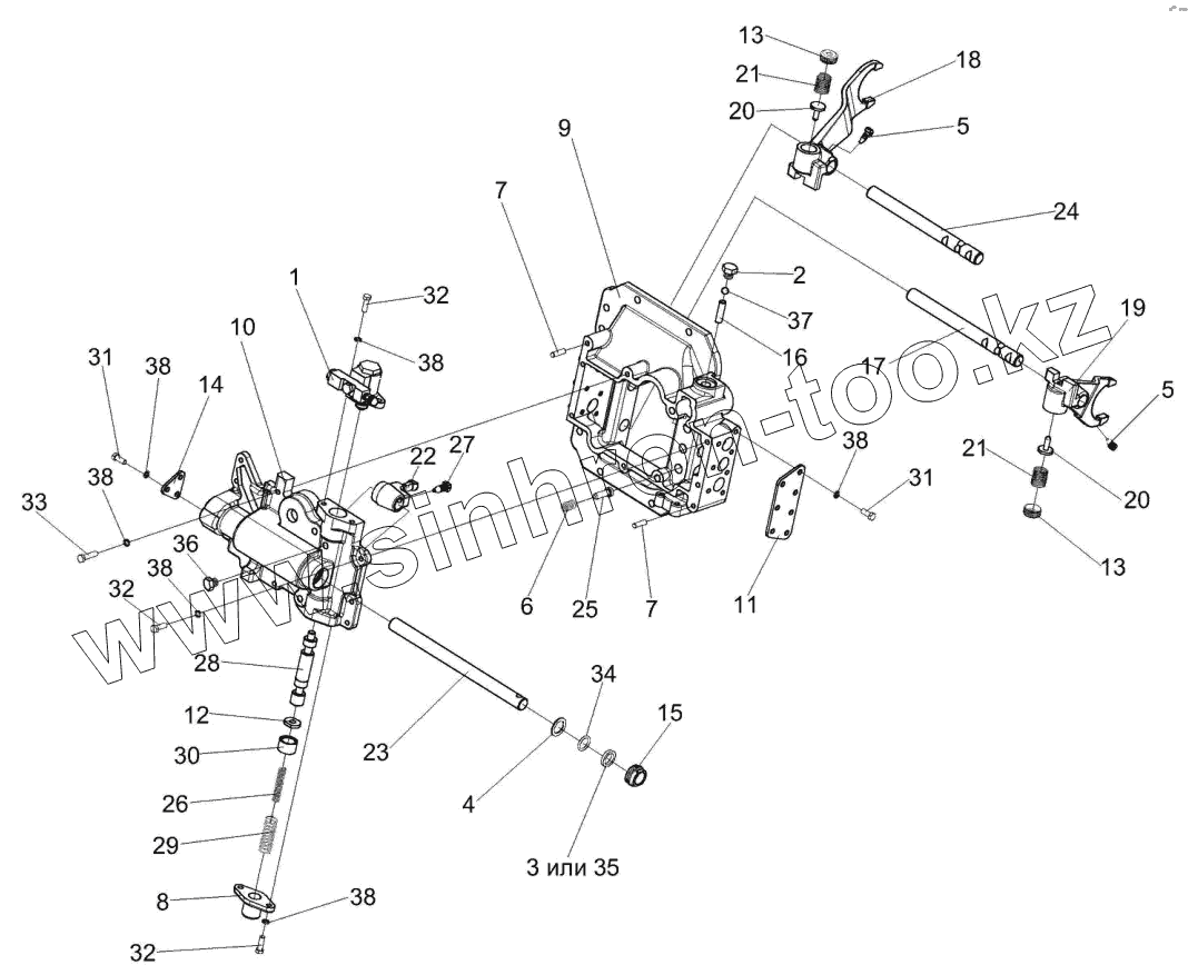 Каталог запасных частей к технике: Гомсельмаш КВК-800 (FS80-5). Механизм переключения диапазонов 3518020-46160