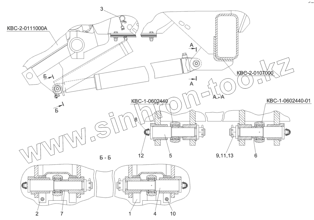 Каталог запасных частей к технике: Гомсельмаш КВК-800 (FS80-5). Механизм вывешивания КВС-1-0105000А