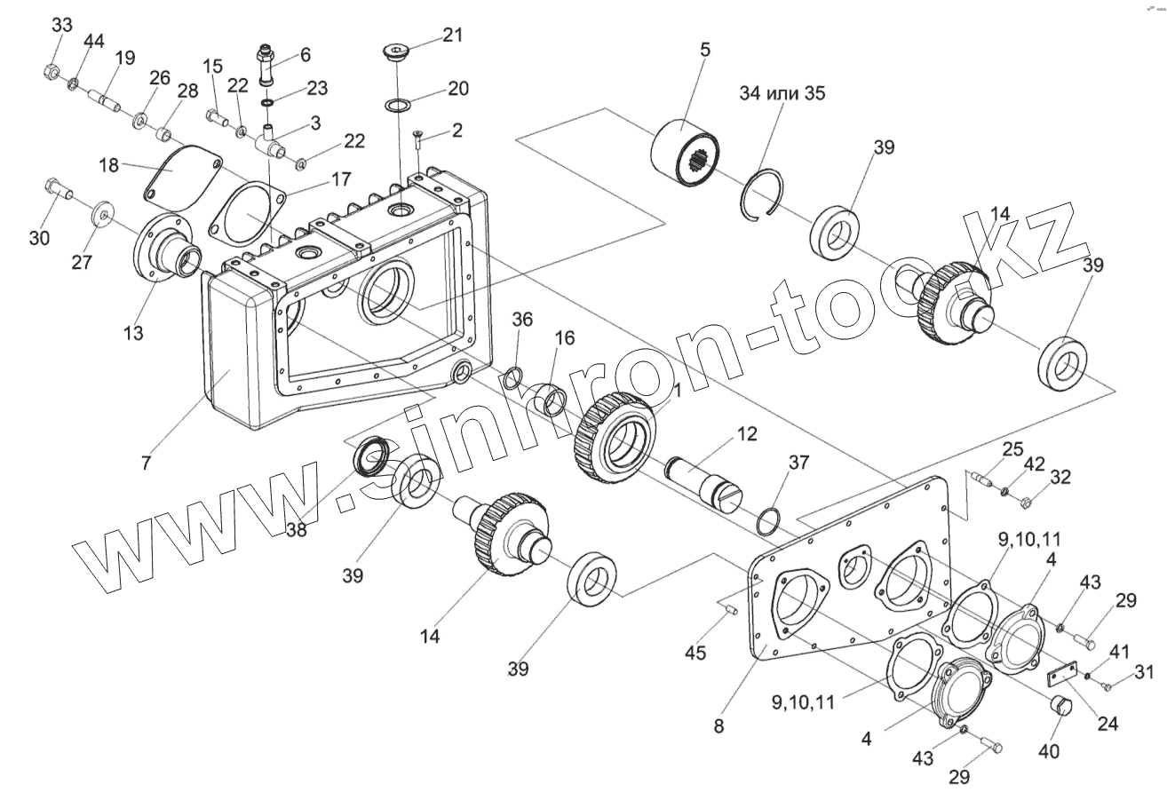 Каталог запасных частей к технике: Гомсельмаш КВК-800 (FS80-5). Редуктор КВС-2-0104100