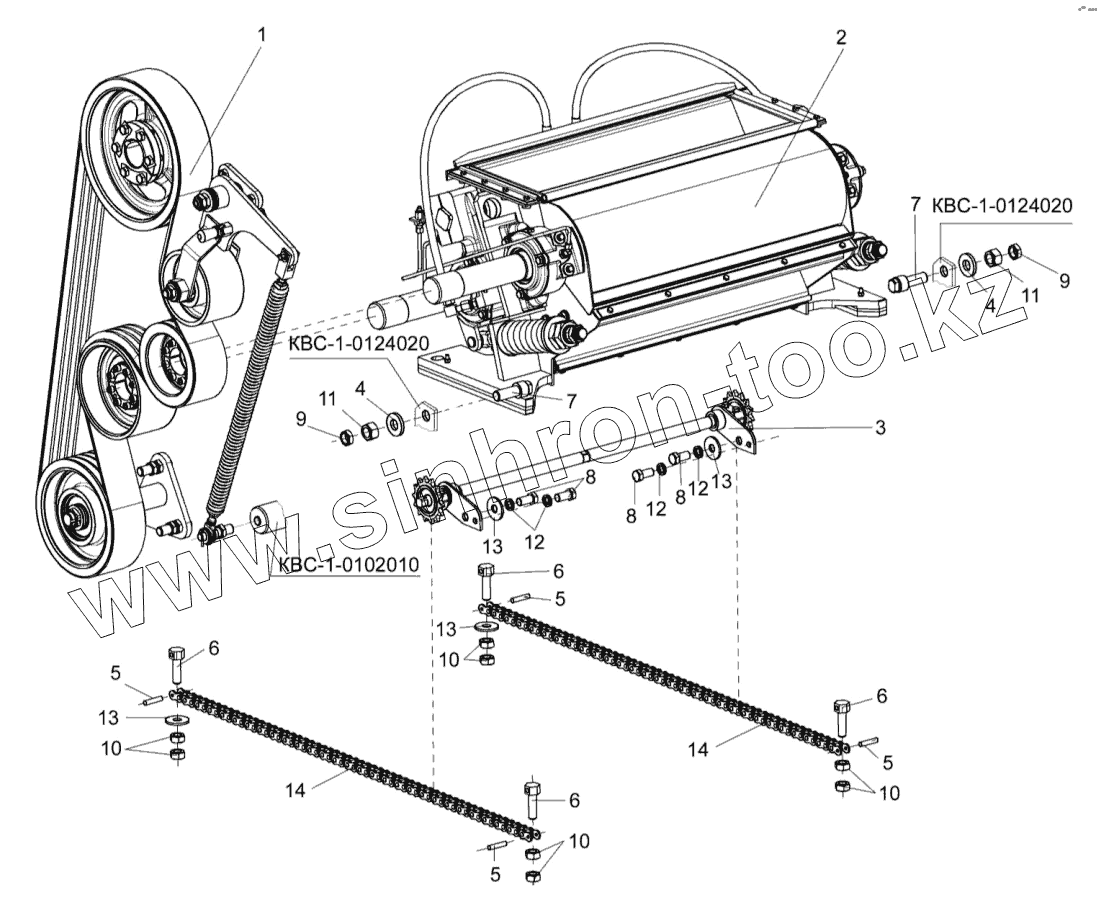 Каталог запасных частей к технике: Гомсельмаш КВК-800 (FS80-5). Устройство доизмельчающее КВС-1-0148000